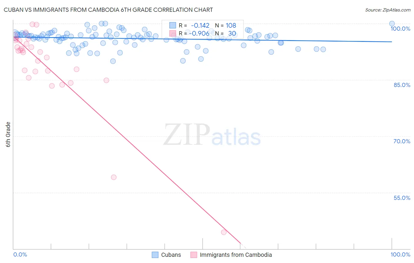 Cuban vs Immigrants from Cambodia 6th Grade Correlation Chart