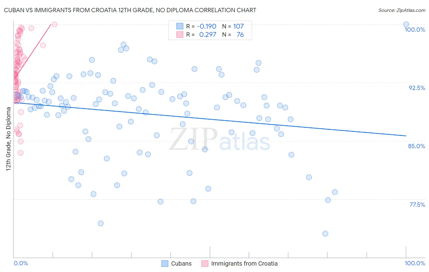 Cuban vs Immigrants from Croatia 12th Grade, No Diploma Correlation Chart