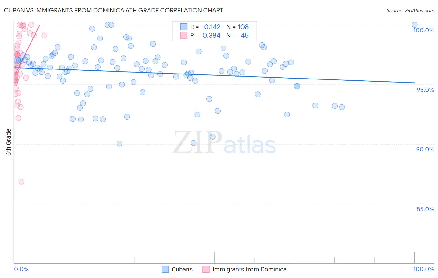 Cuban vs Immigrants from Dominica 6th Grade Correlation Chart