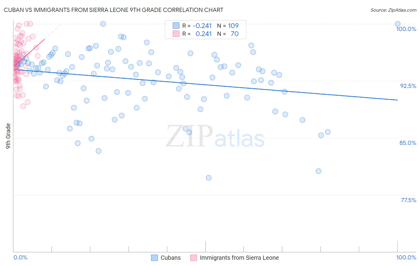 Cuban vs Immigrants from Sierra Leone 9th Grade Correlation Chart