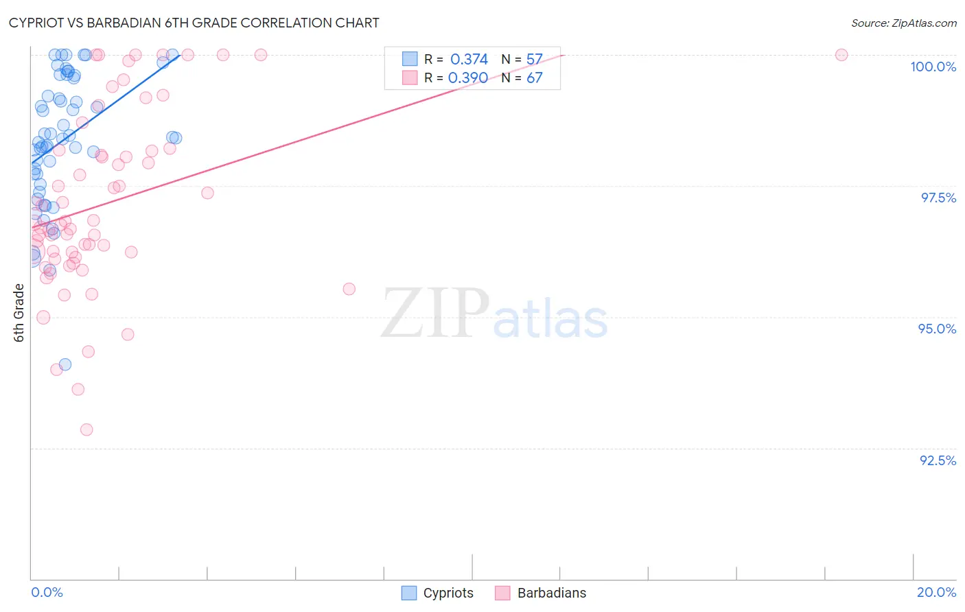 Cypriot vs Barbadian 6th Grade Correlation Chart