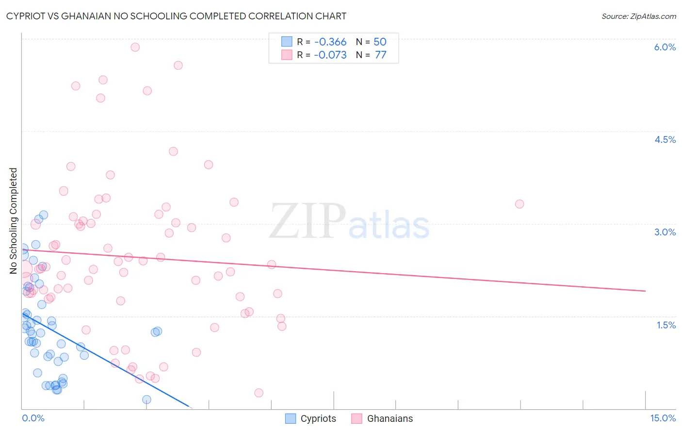Cypriot vs Ghanaian No Schooling Completed Correlation Chart