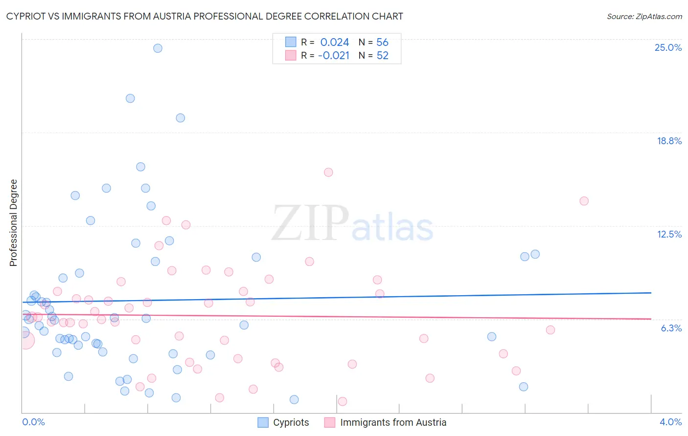 Cypriot vs Immigrants from Austria Professional Degree Correlation Chart