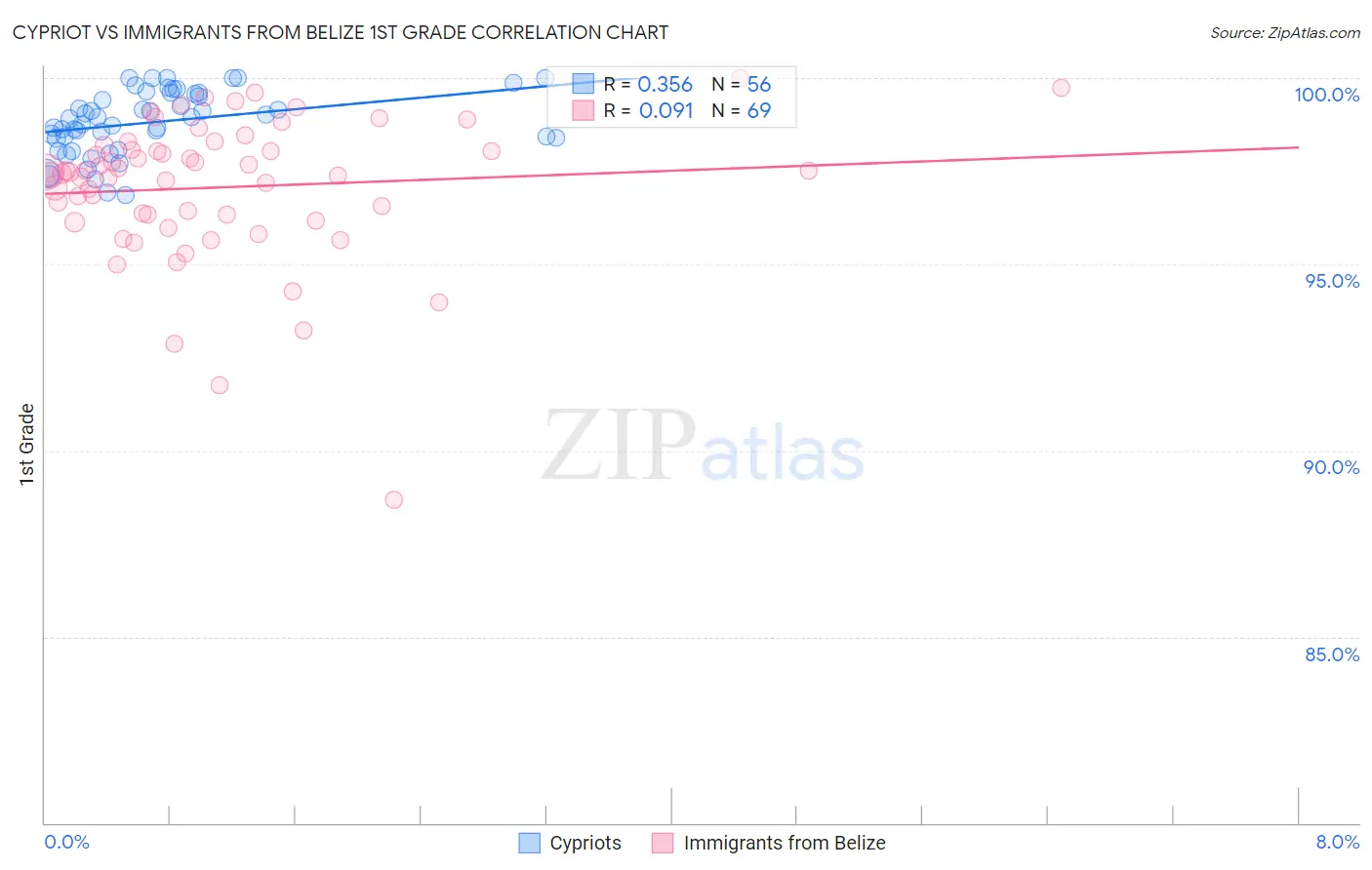Cypriot vs Immigrants from Belize 1st Grade Correlation Chart
