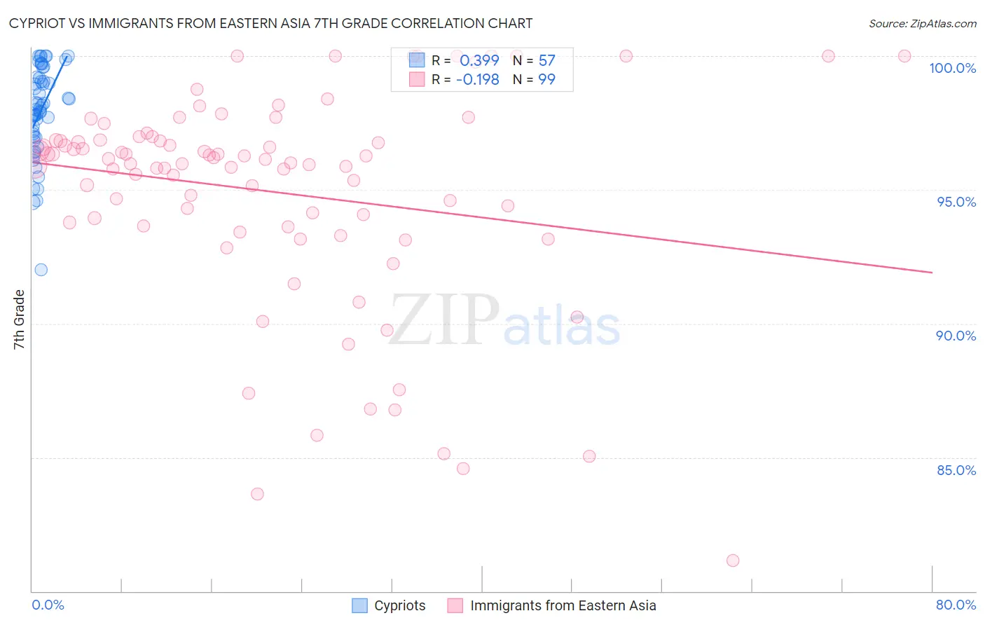 Cypriot vs Immigrants from Eastern Asia 7th Grade Correlation Chart