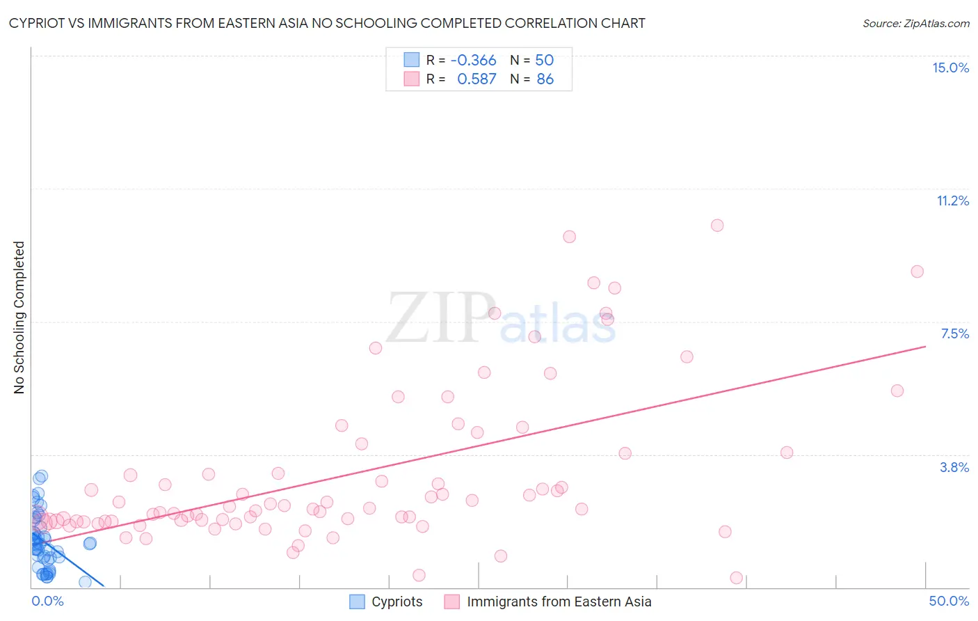 Cypriot vs Immigrants from Eastern Asia No Schooling Completed Correlation Chart