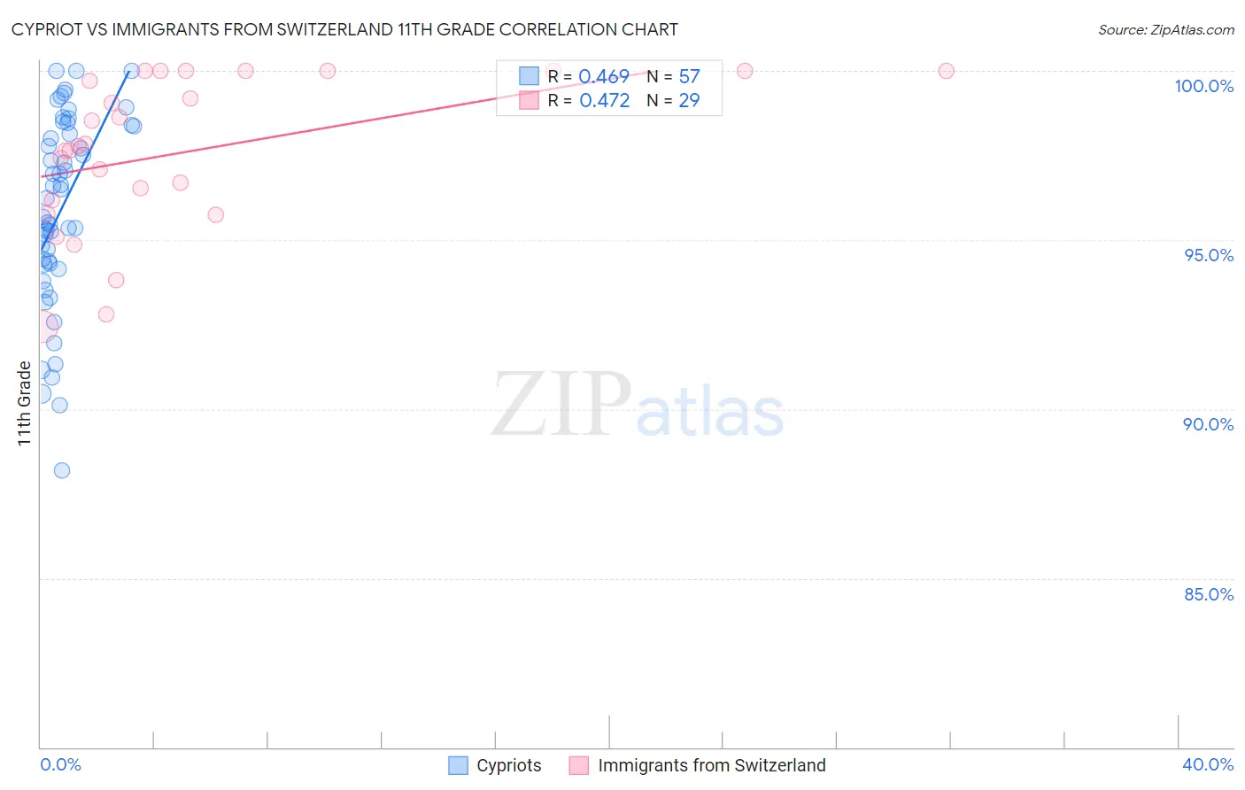 Cypriot vs Immigrants from Switzerland 11th Grade Correlation Chart