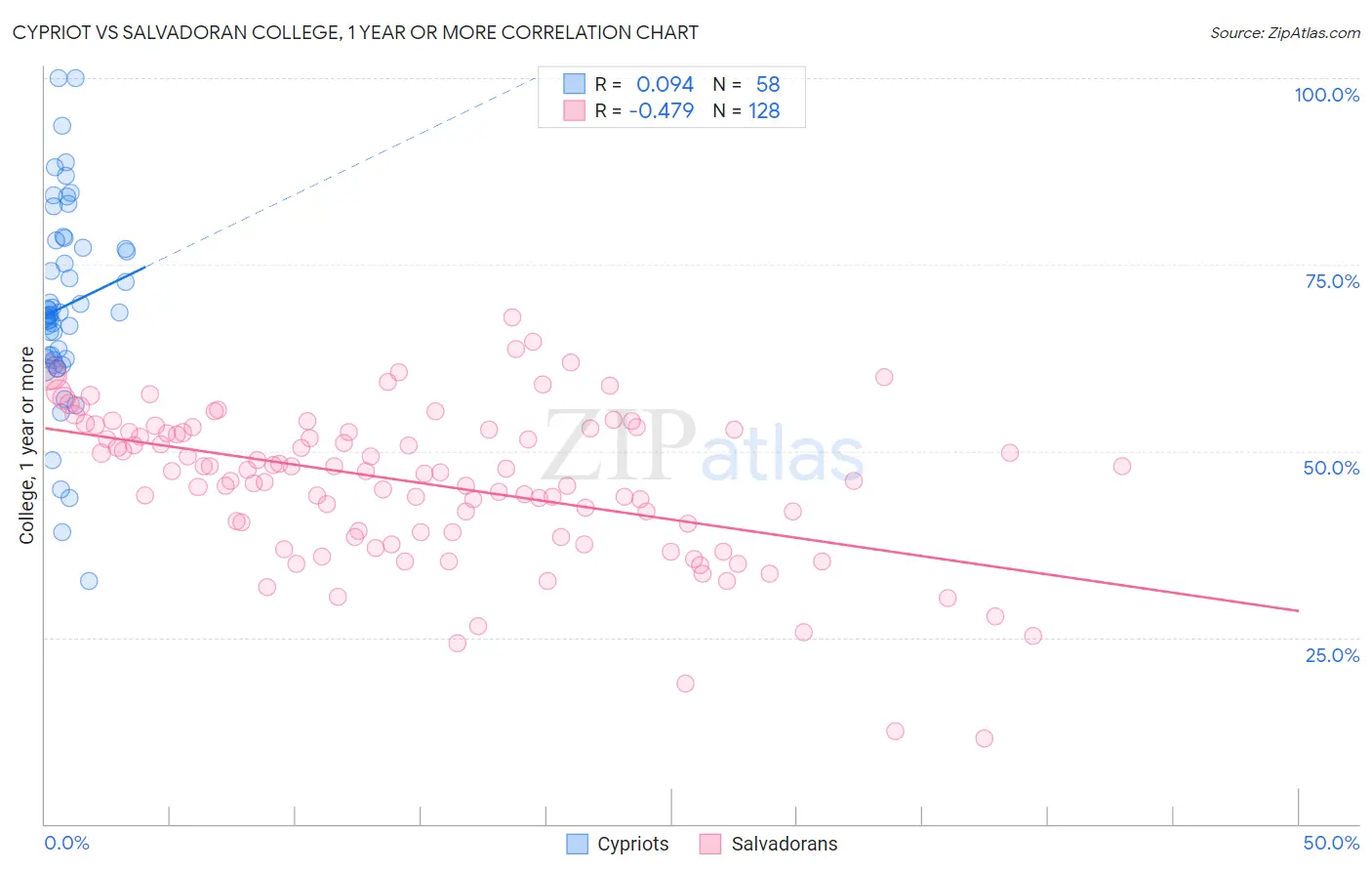 Cypriot vs Salvadoran College, 1 year or more Correlation Chart