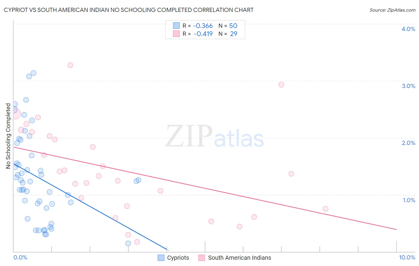 Cypriot vs South American Indian No Schooling Completed Correlation Chart