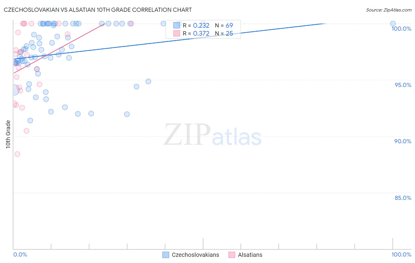 Czechoslovakian vs Alsatian 10th Grade Correlation Chart
