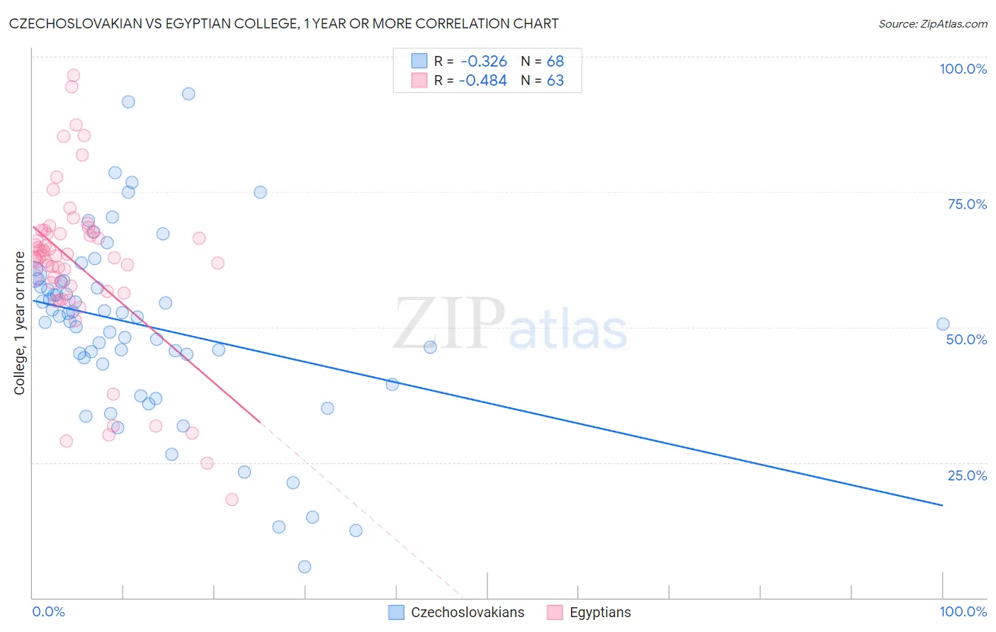 Czechoslovakian vs Egyptian College, 1 year or more Correlation Chart