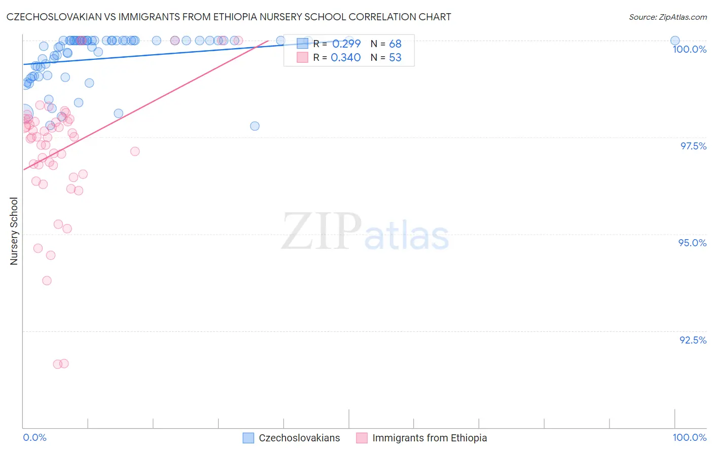 Czechoslovakian vs Immigrants from Ethiopia Nursery School Correlation Chart