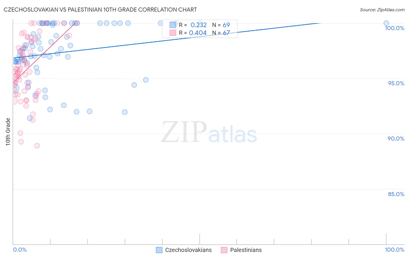Czechoslovakian vs Palestinian 10th Grade Correlation Chart