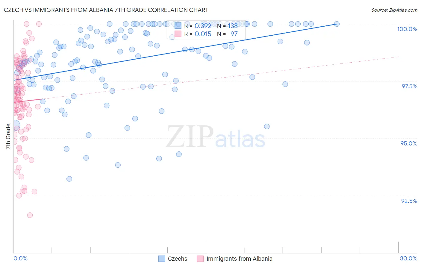 Czech vs Immigrants from Albania 7th Grade Correlation Chart