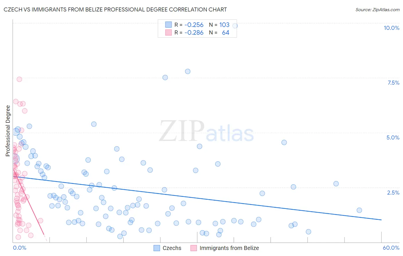 Czech vs Immigrants from Belize Professional Degree Correlation Chart