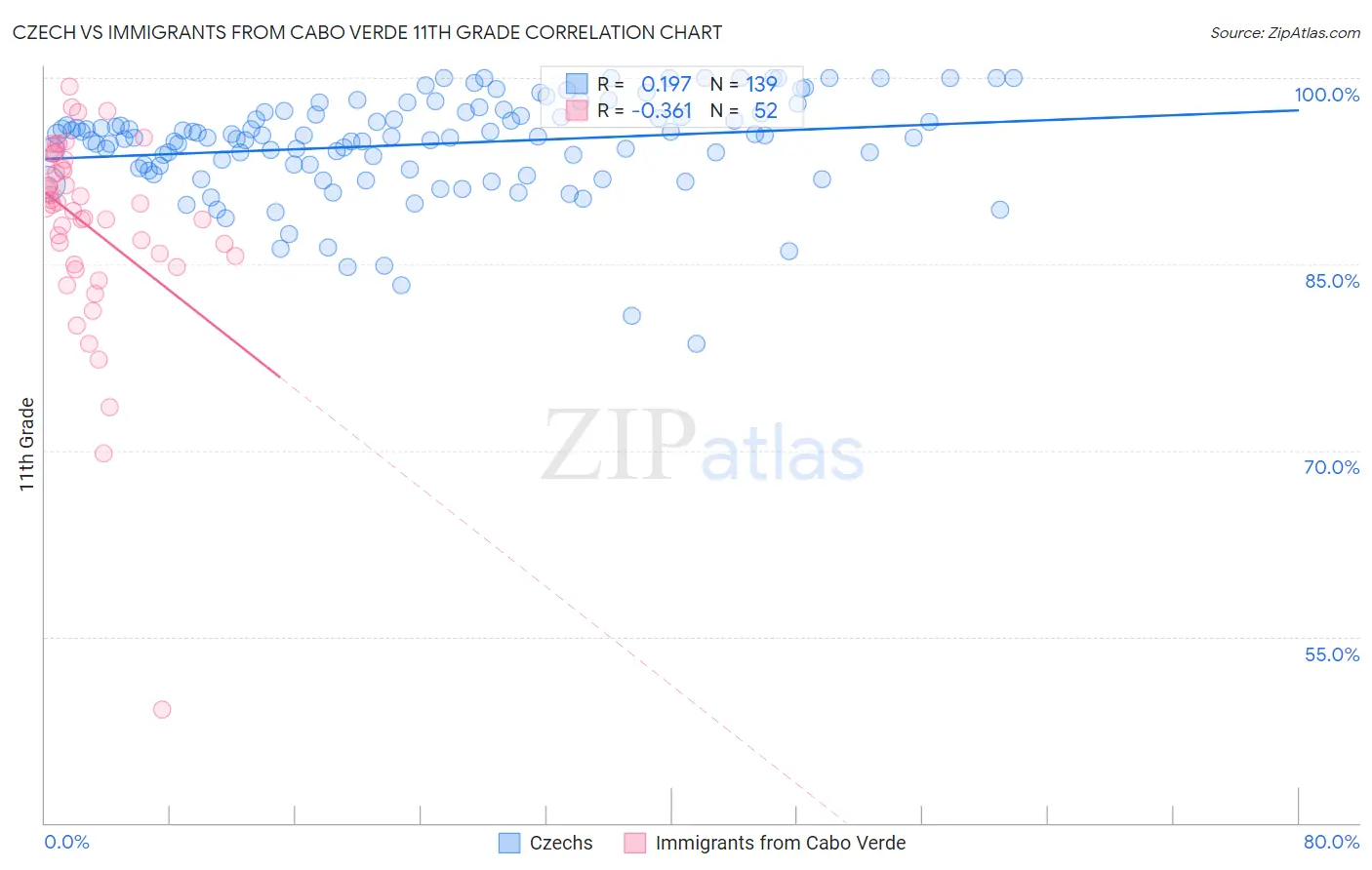 Czech vs Immigrants from Cabo Verde 11th Grade Correlation Chart