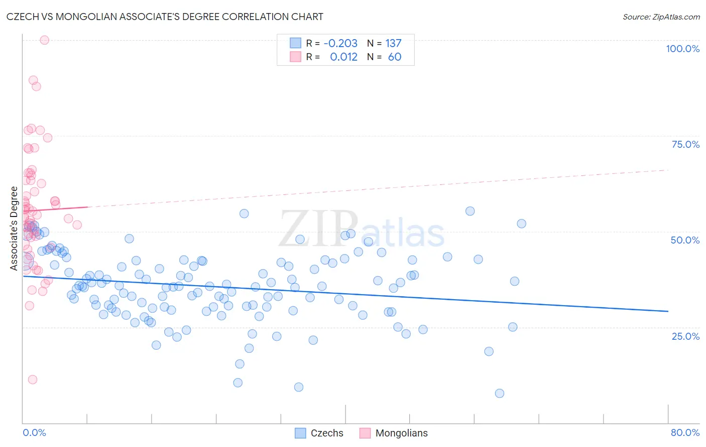 Czech vs Mongolian Associate's Degree Correlation Chart