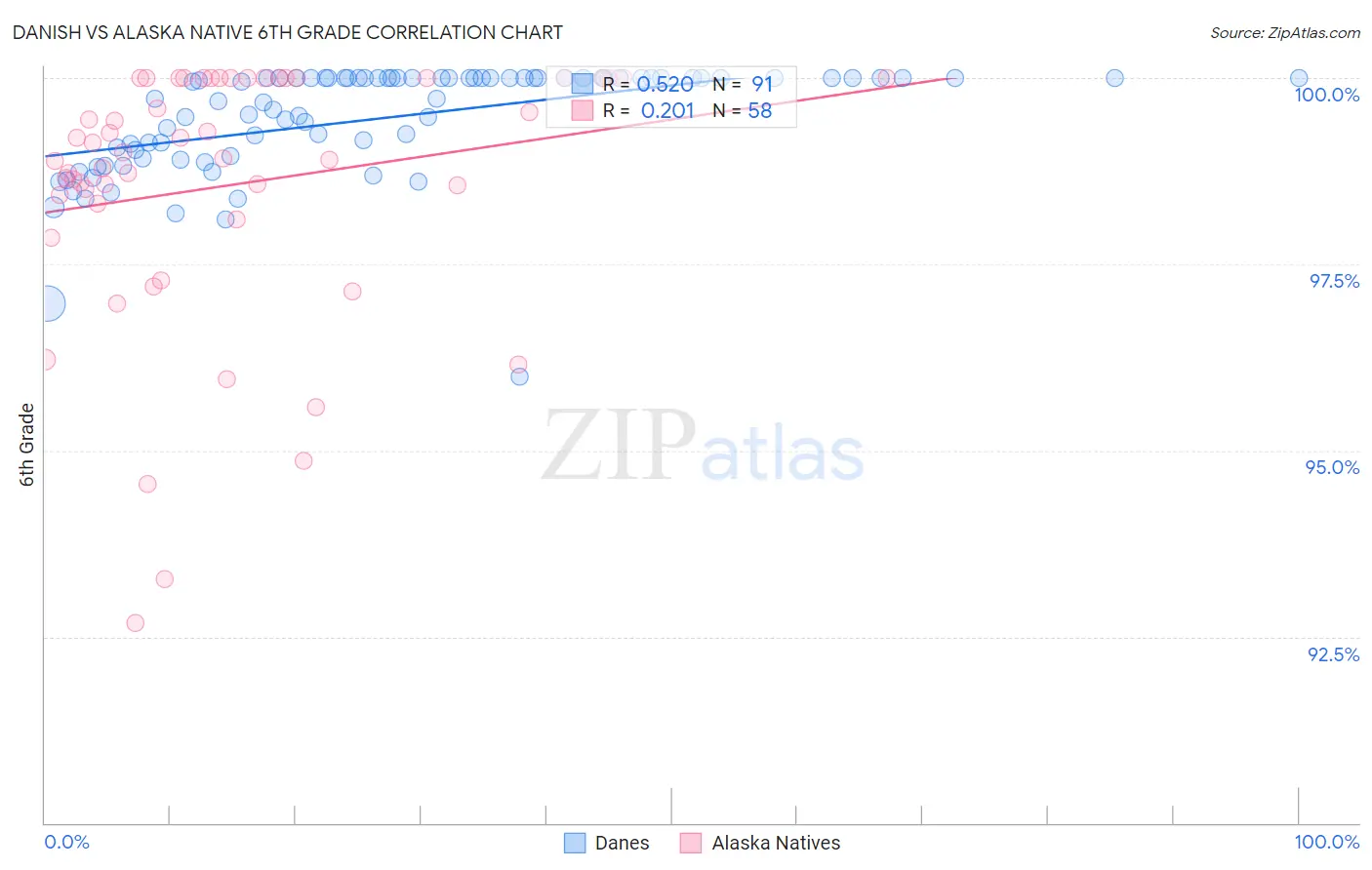 Danish vs Alaska Native 6th Grade Correlation Chart