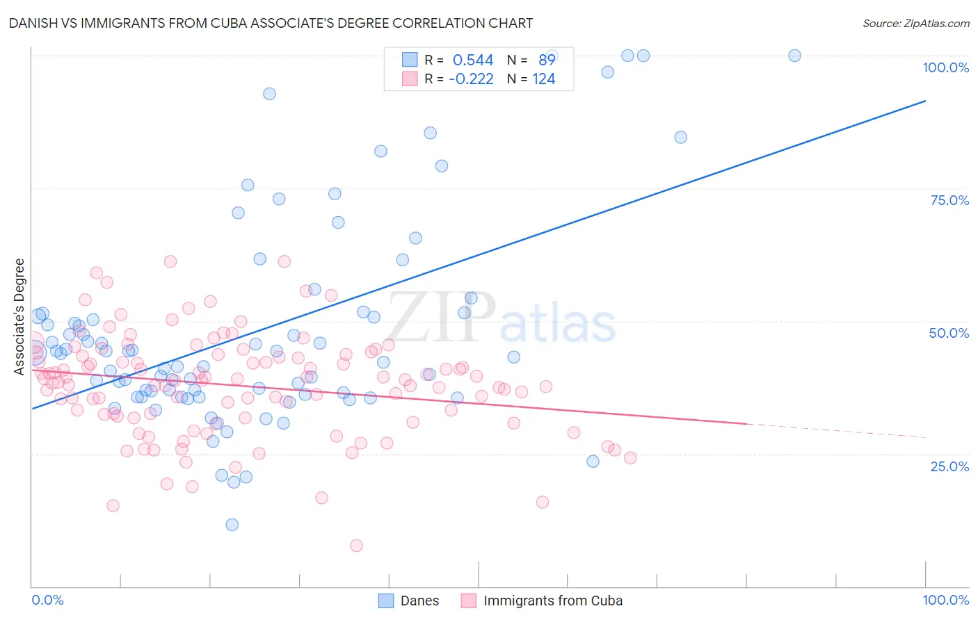 Danish vs Immigrants from Cuba Associate's Degree Correlation Chart