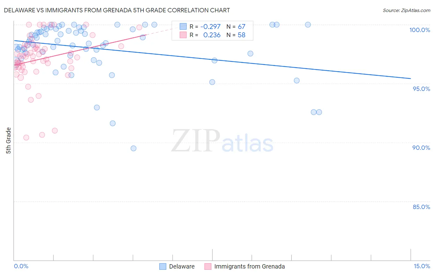 Delaware vs Immigrants from Grenada 5th Grade Correlation Chart