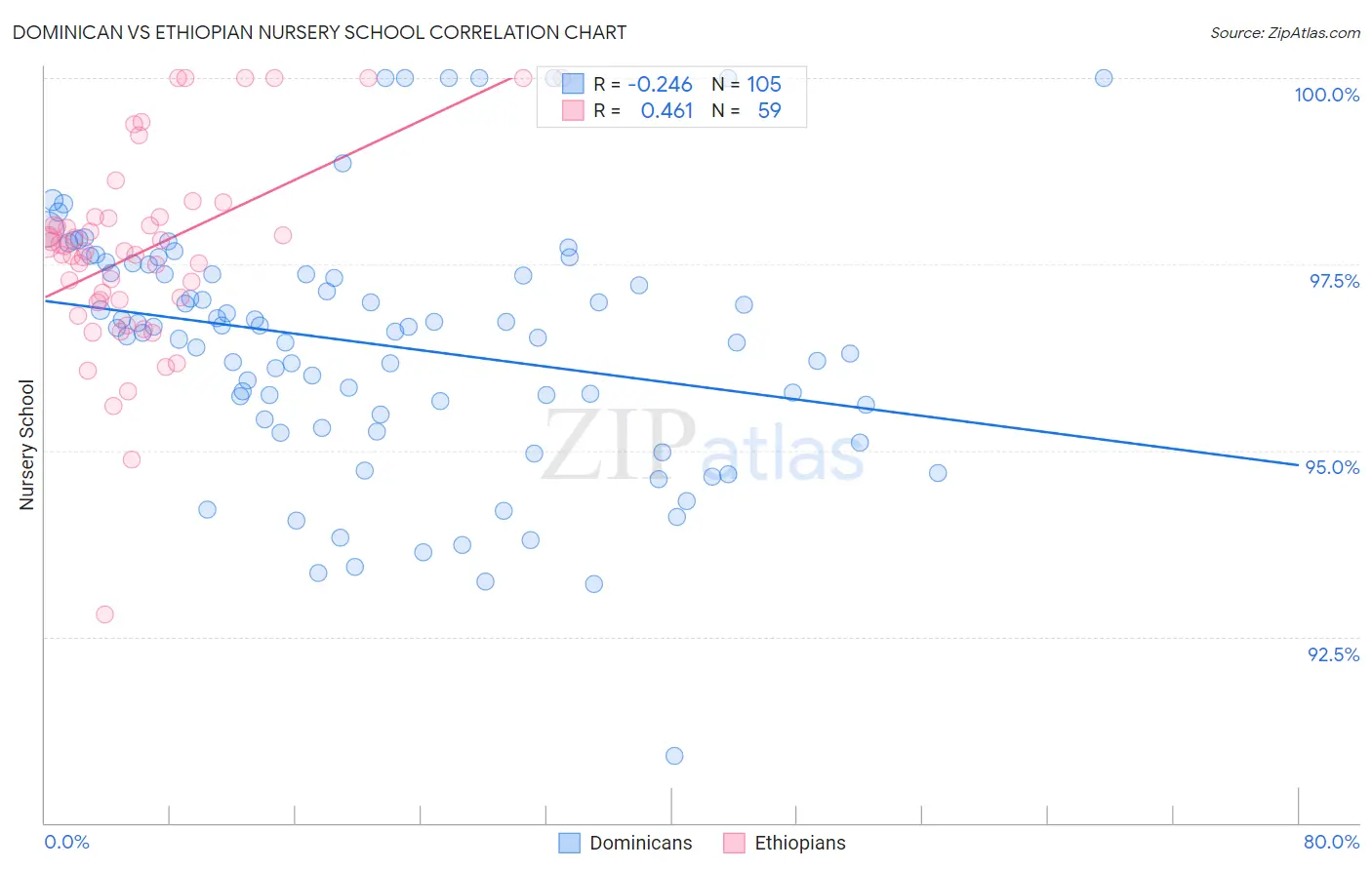 Dominican vs Ethiopian Nursery School Correlation Chart