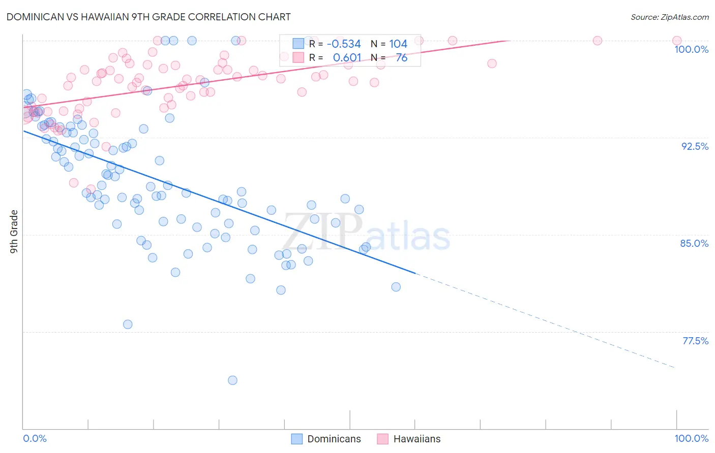 Dominican vs Hawaiian 9th Grade Correlation Chart