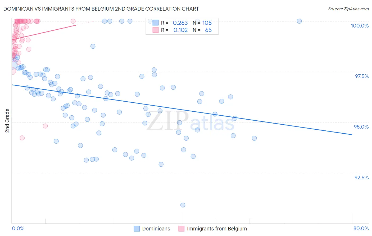 Dominican vs Immigrants from Belgium 2nd Grade Correlation Chart