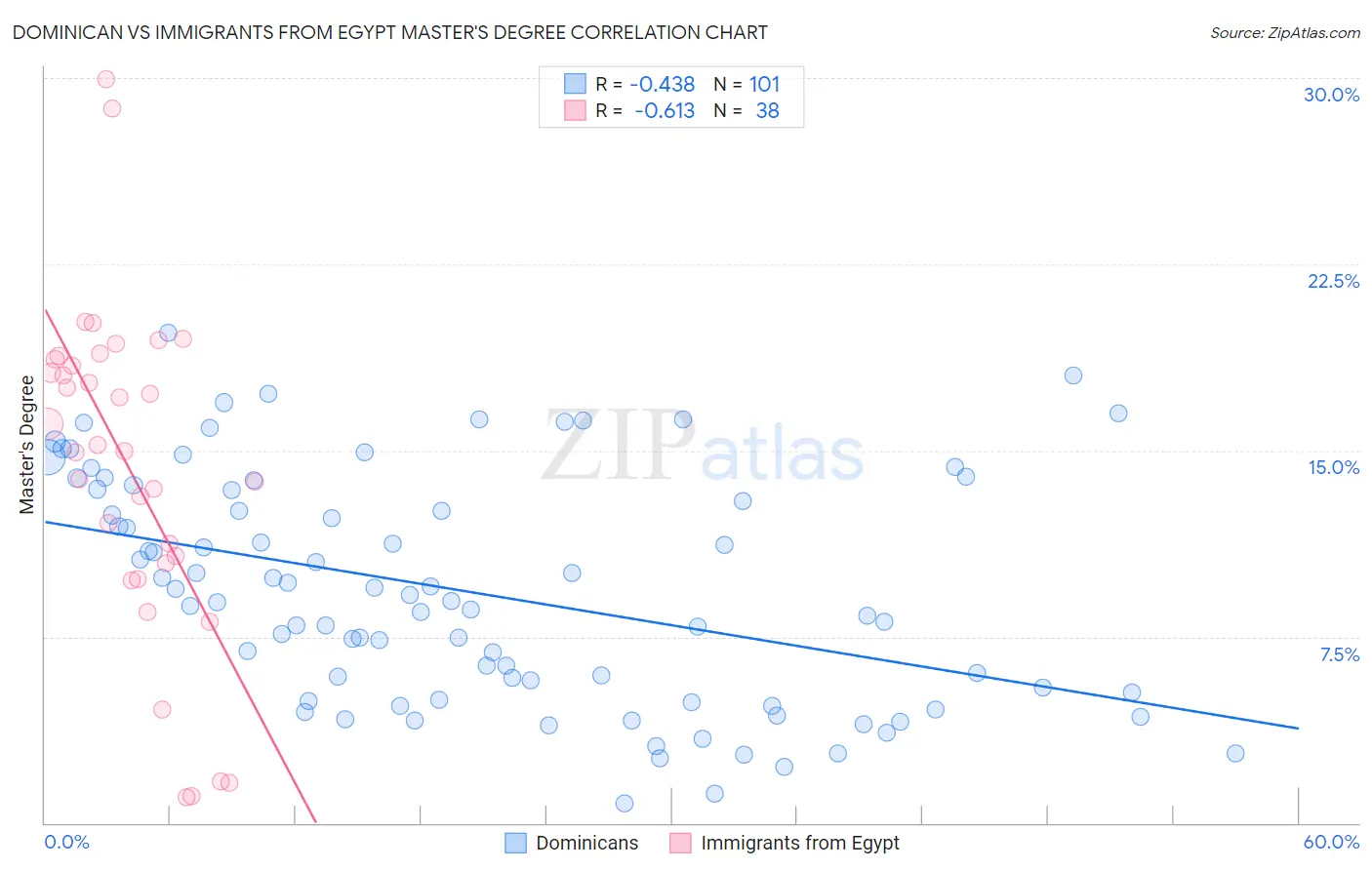 Dominican vs Immigrants from Egypt Master's Degree Correlation Chart