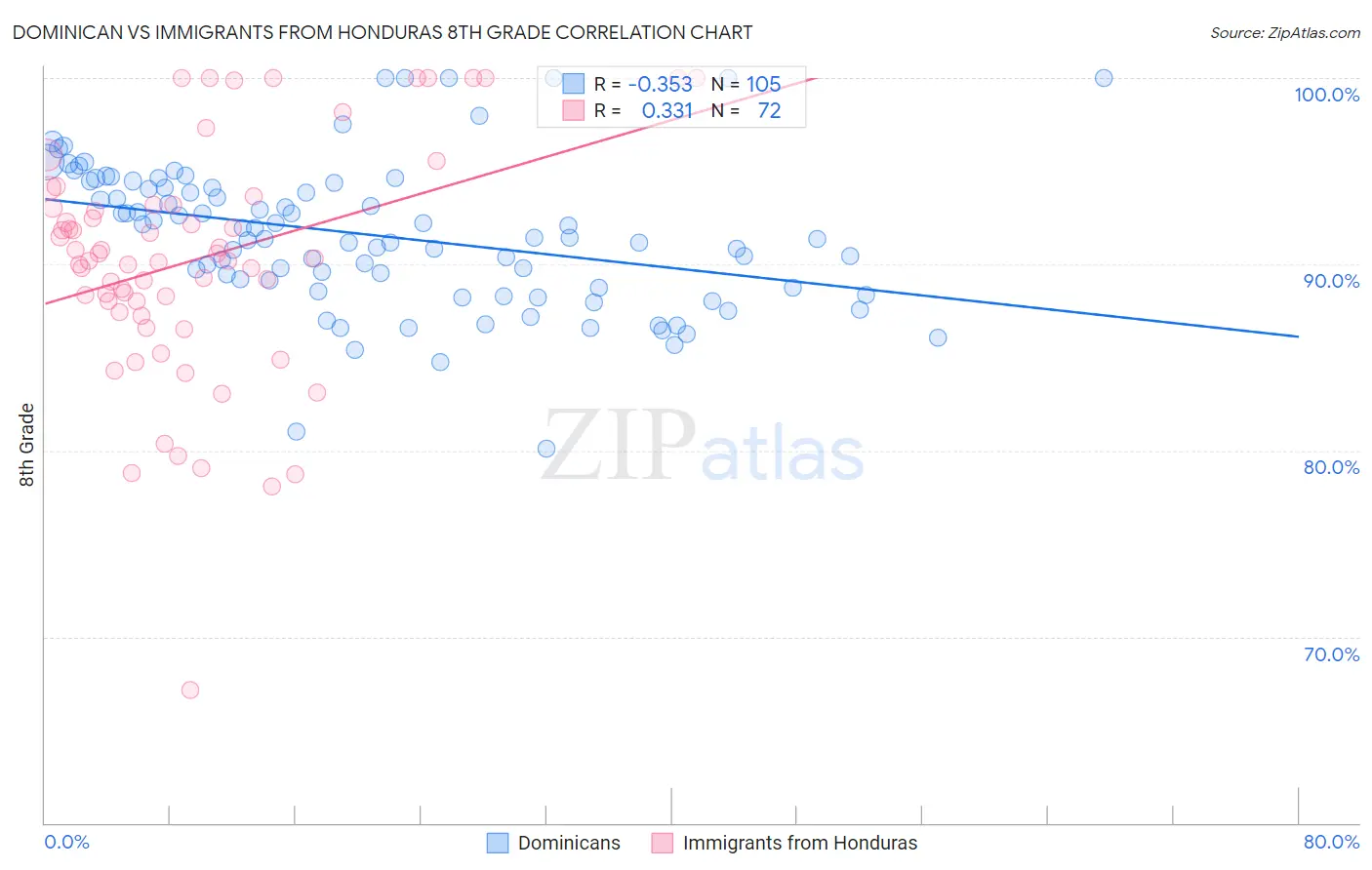 Dominican vs Immigrants from Honduras 8th Grade Correlation Chart