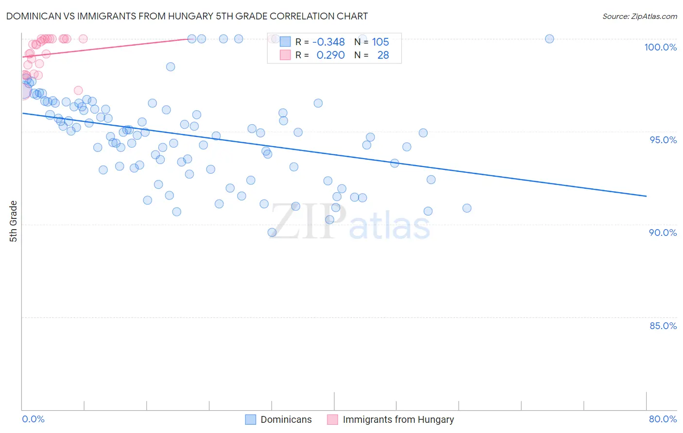 Dominican vs Immigrants from Hungary 5th Grade Correlation Chart