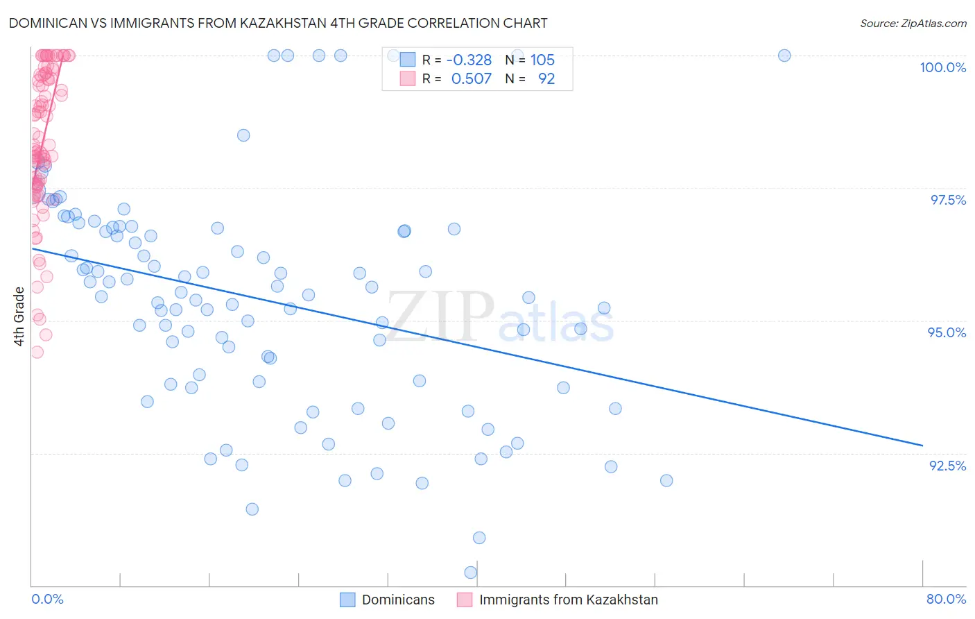 Dominican vs Immigrants from Kazakhstan 4th Grade Correlation Chart
