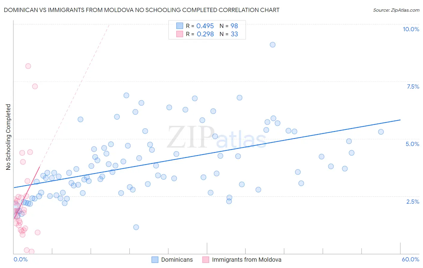 Dominican vs Immigrants from Moldova No Schooling Completed Correlation Chart