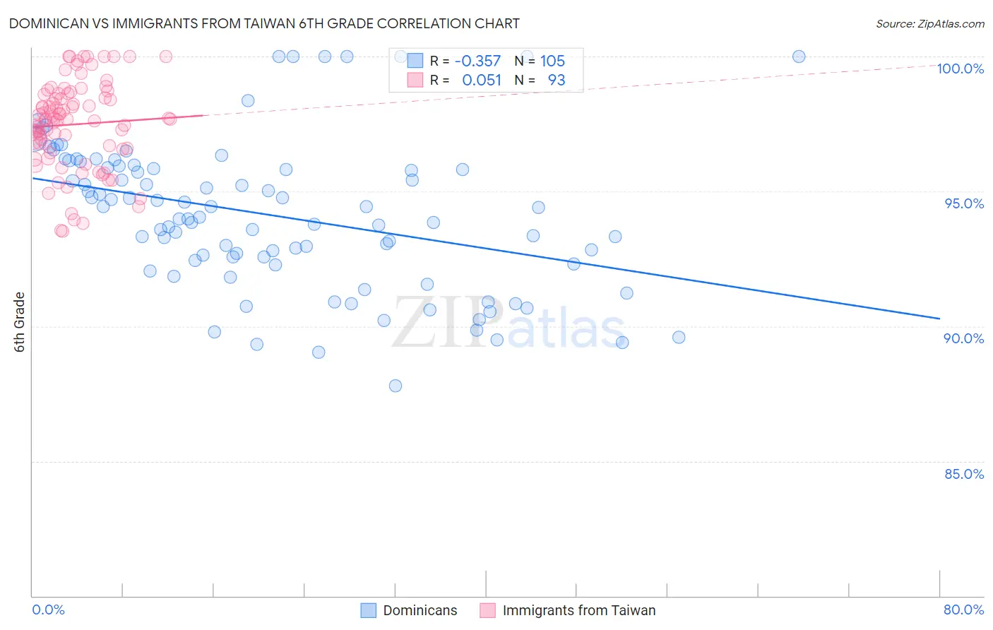 Dominican vs Immigrants from Taiwan 6th Grade Correlation Chart