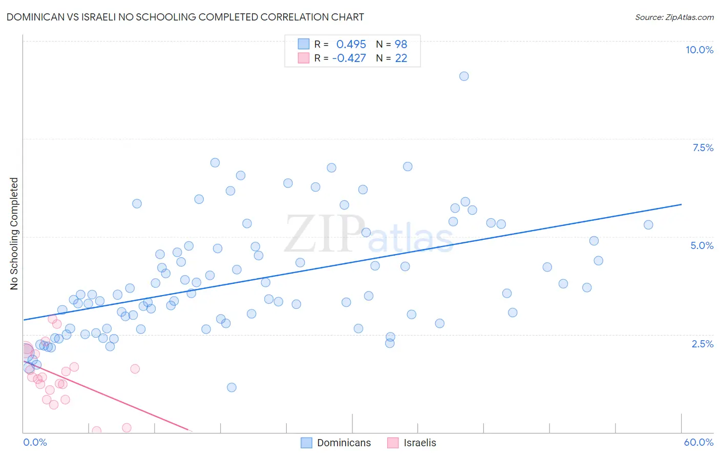 Dominican vs Israeli No Schooling Completed Correlation Chart