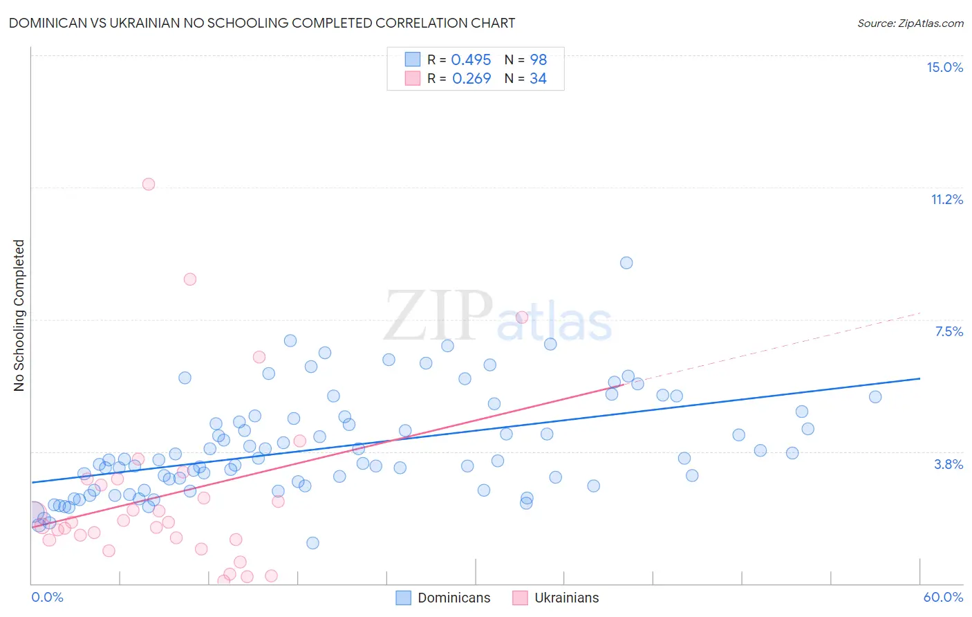 Dominican vs Ukrainian No Schooling Completed Correlation Chart