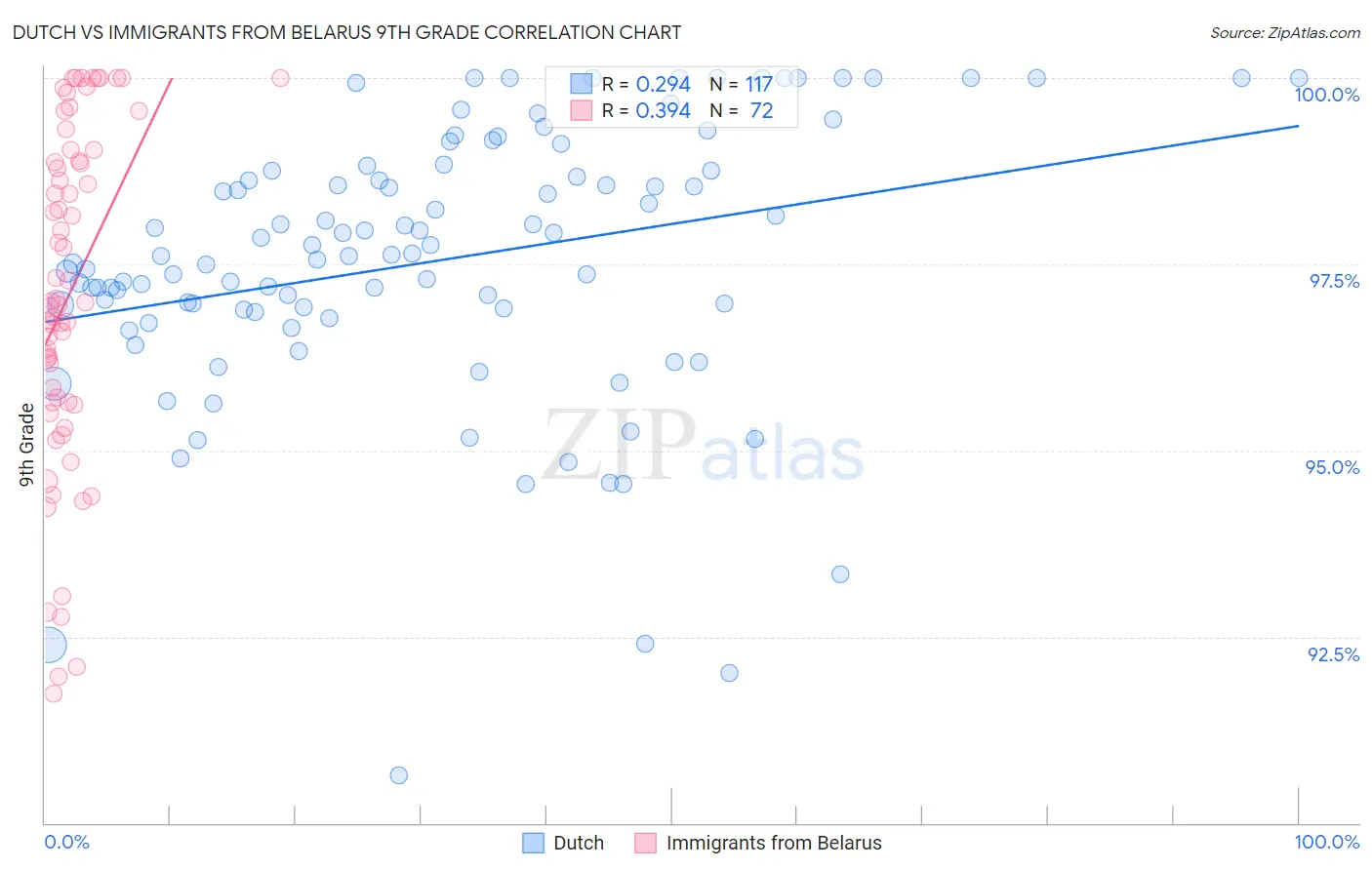 Dutch vs Immigrants from Belarus 9th Grade Correlation Chart