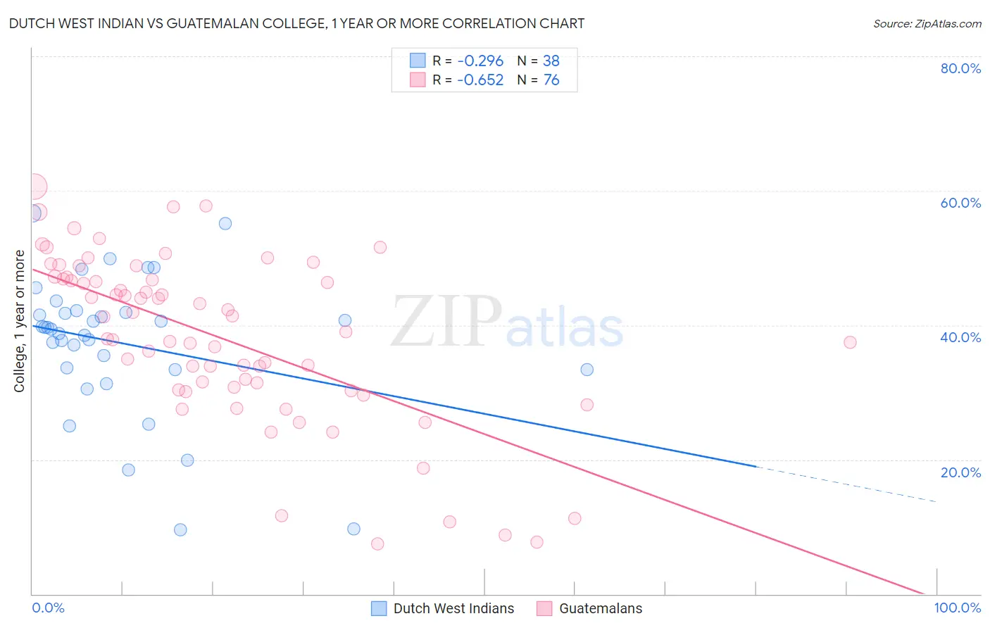 Dutch West Indian vs Guatemalan College, 1 year or more Correlation Chart