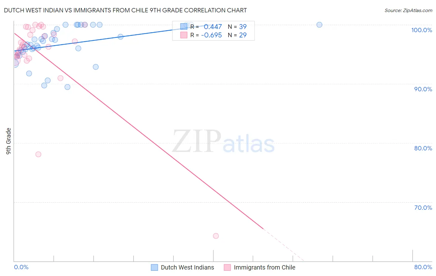 Dutch West Indian vs Immigrants from Chile 9th Grade Correlation Chart