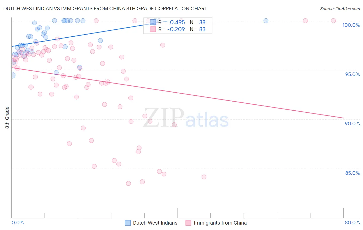 Dutch West Indian vs Immigrants from China 8th Grade Correlation Chart