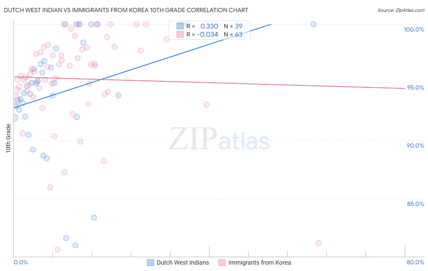 Dutch West Indian vs Immigrants from Korea 10th Grade Correlation Chart