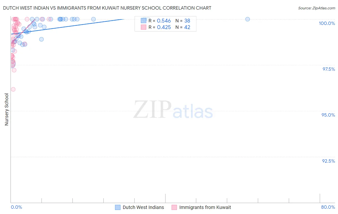 Dutch West Indian vs Immigrants from Kuwait Nursery School Correlation Chart