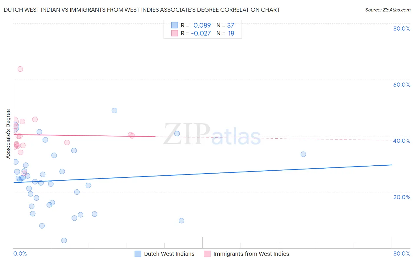 Dutch West Indian vs Immigrants from West Indies Associate's Degree Correlation Chart