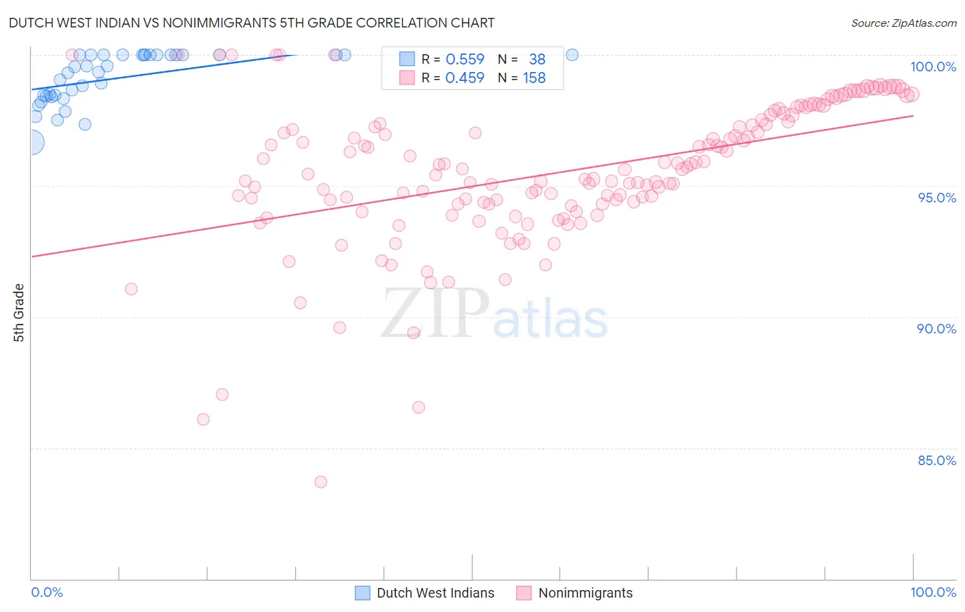 Dutch West Indian vs Nonimmigrants 5th Grade Correlation Chart