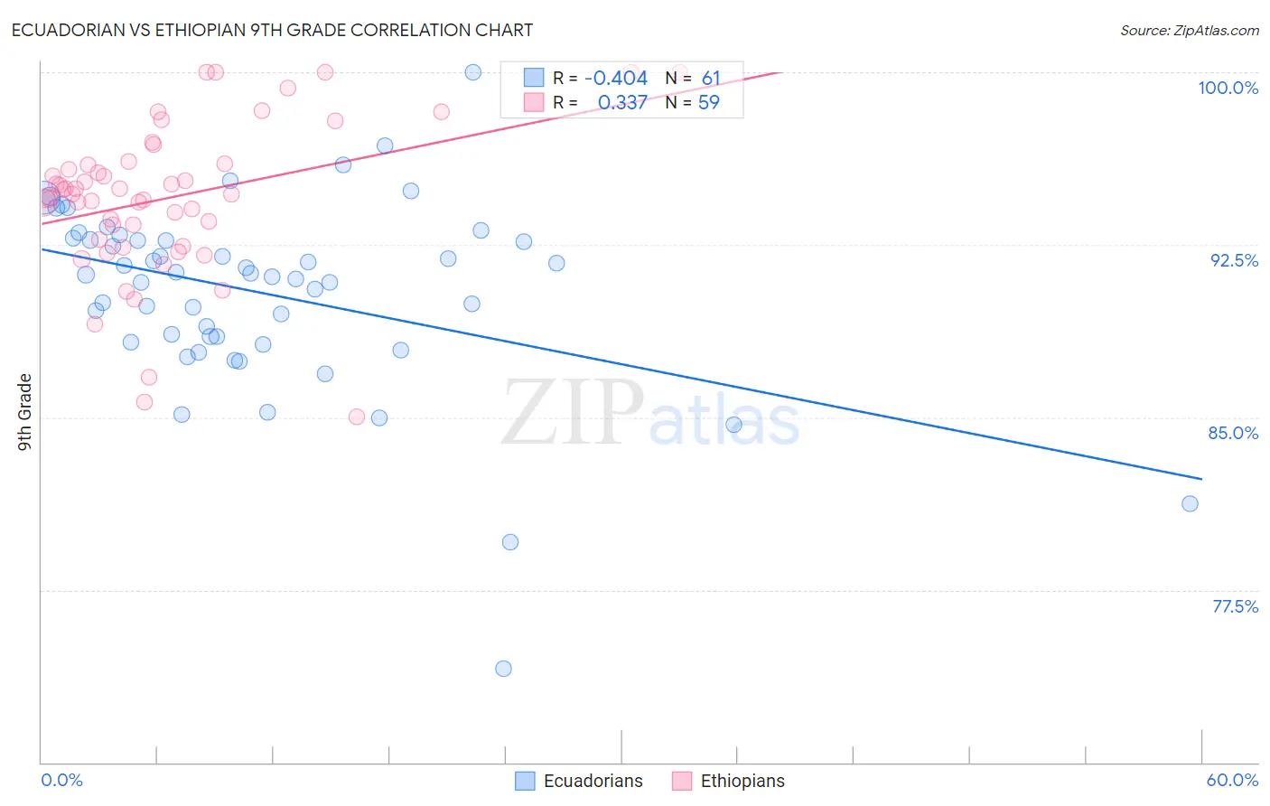 Ecuadorian vs Ethiopian 9th Grade Correlation Chart