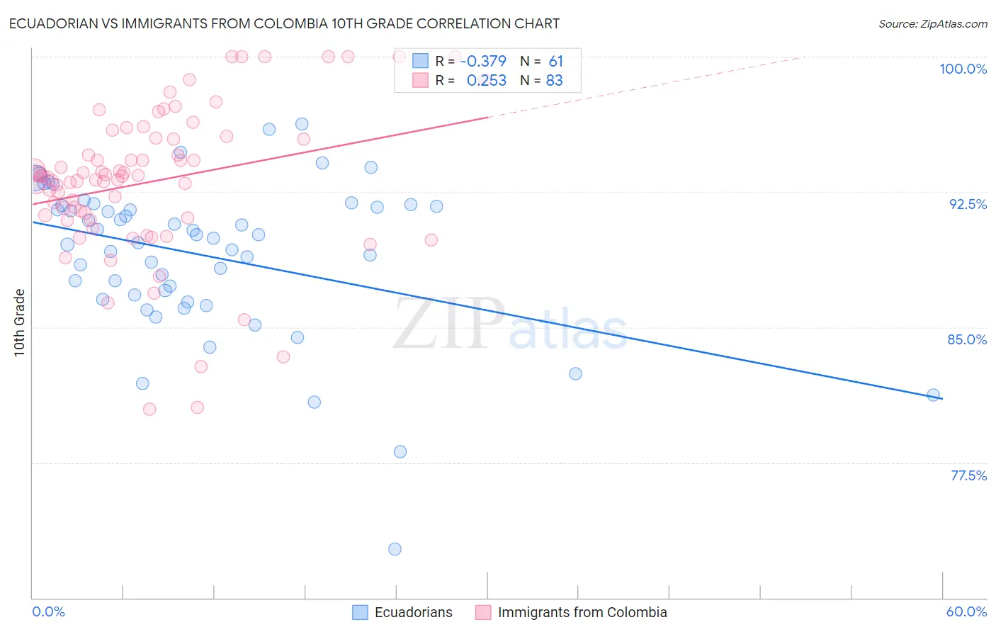 Ecuadorian vs Immigrants from Colombia 10th Grade Correlation Chart