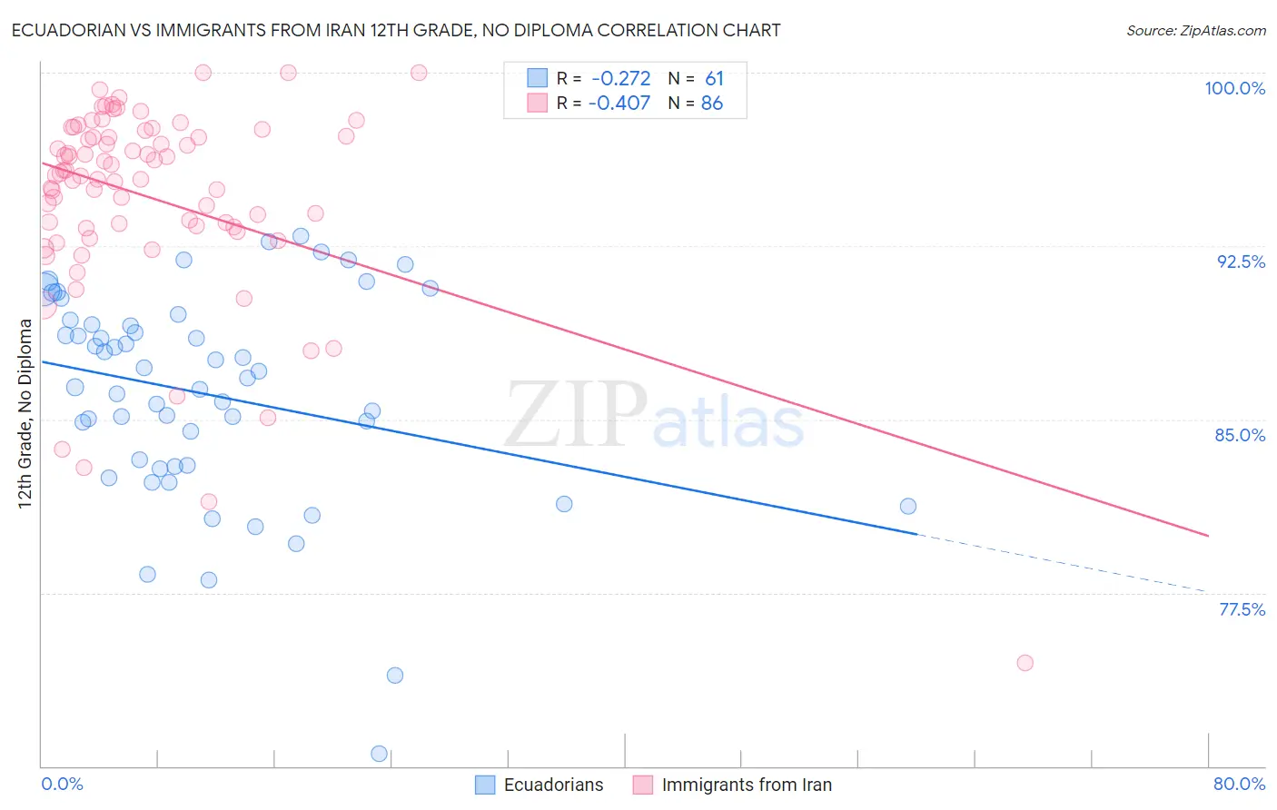 Ecuadorian vs Immigrants from Iran 12th Grade, No Diploma Correlation Chart