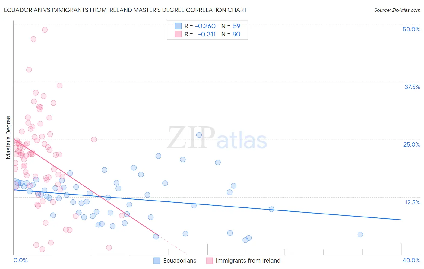Ecuadorian vs Immigrants from Ireland Master's Degree Correlation Chart