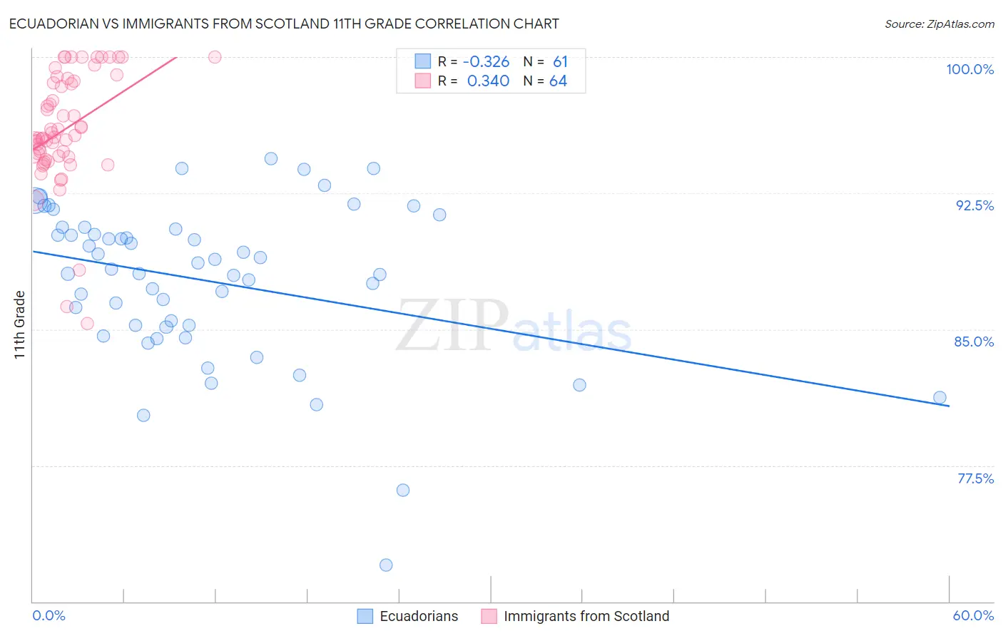 Ecuadorian vs Immigrants from Scotland 11th Grade Correlation Chart