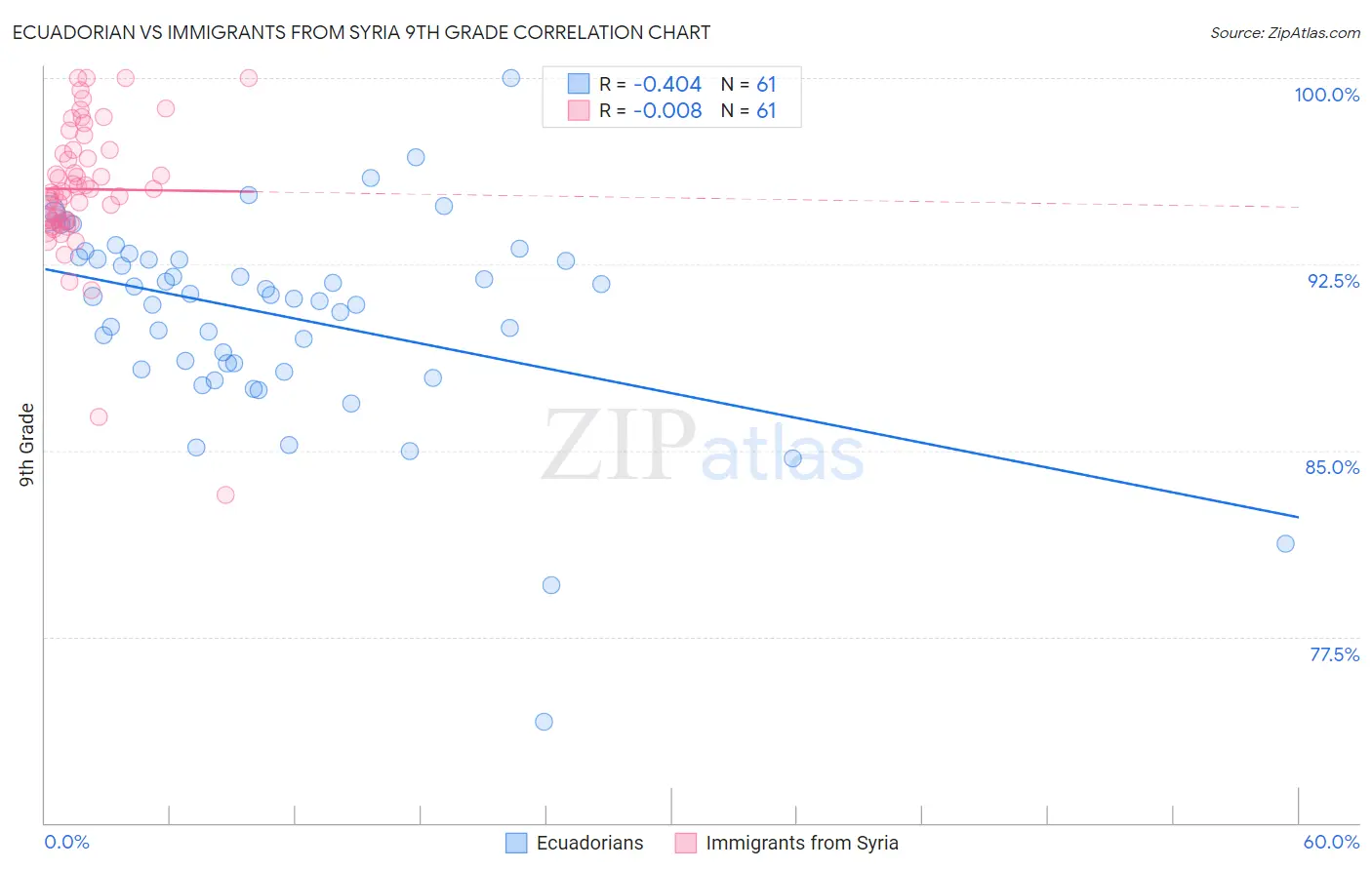 Ecuadorian vs Immigrants from Syria 9th Grade Correlation Chart