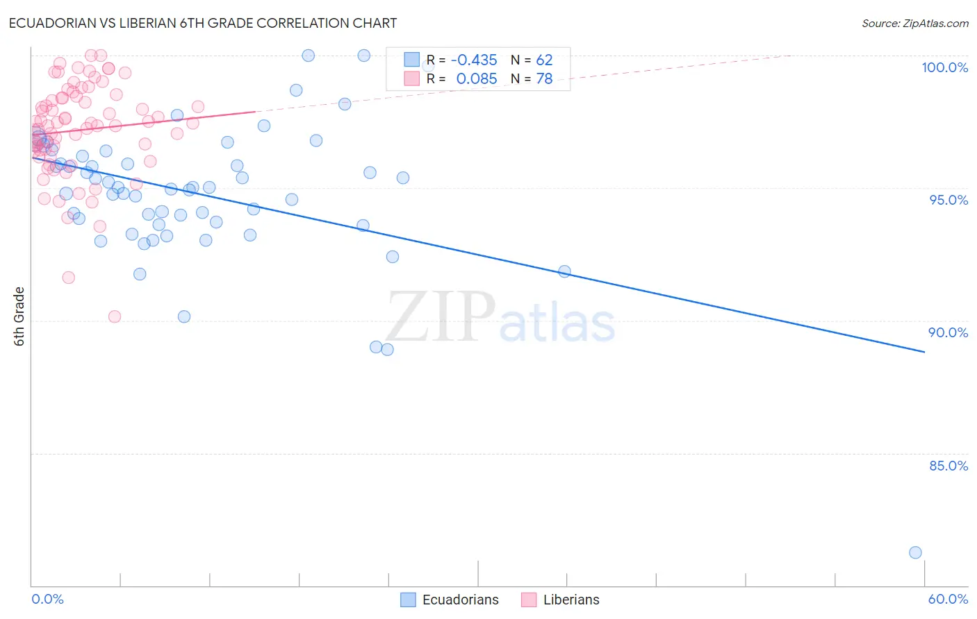 Ecuadorian vs Liberian 6th Grade Correlation Chart